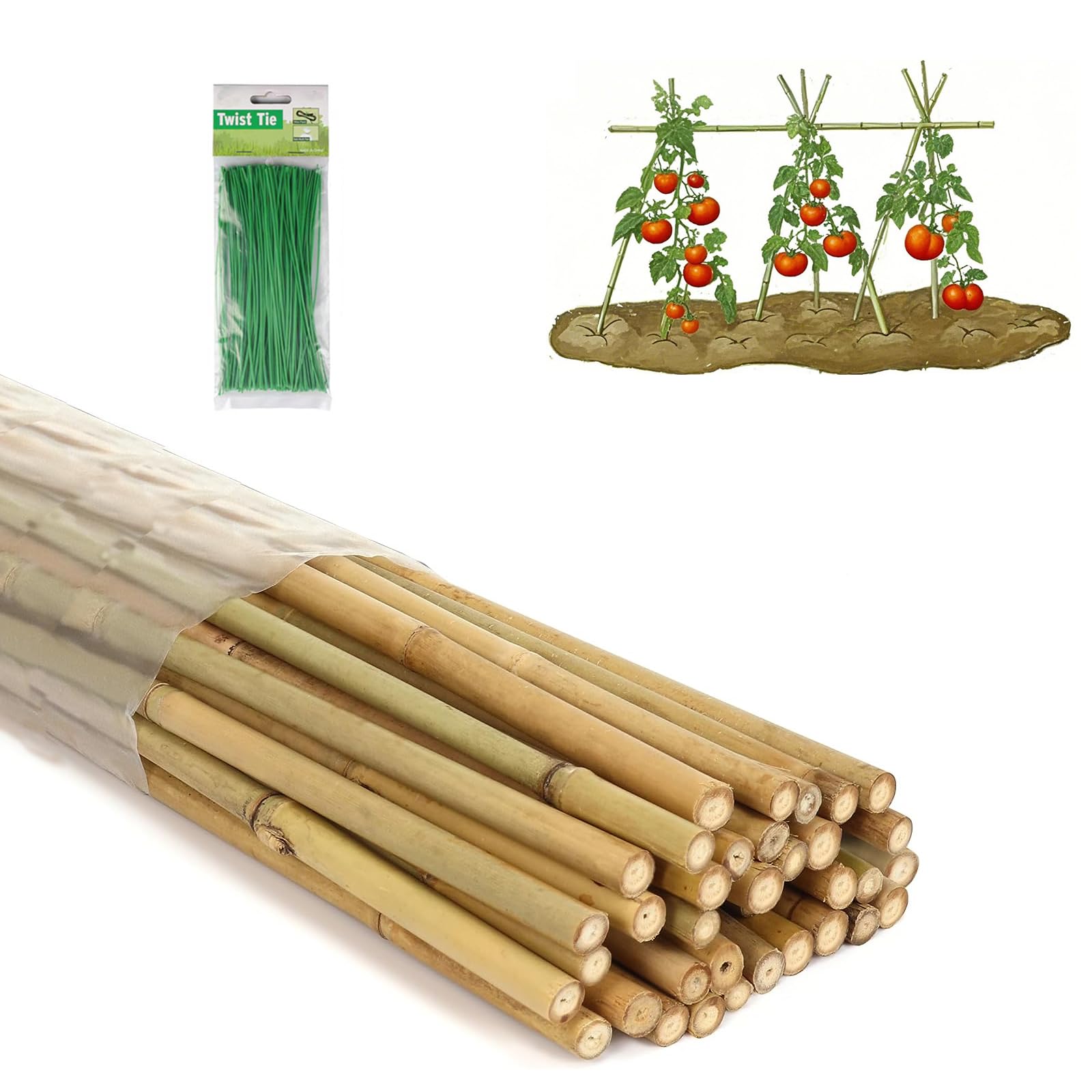 4 Ft Bamboo Stakes with 100 Twist Ties Natural Bamboo Garden Stakes for Tomatoes Cucumber Grapes Pole Beans Trees Potted Dahlia Flowers and Climbing|Lawn & Garden
