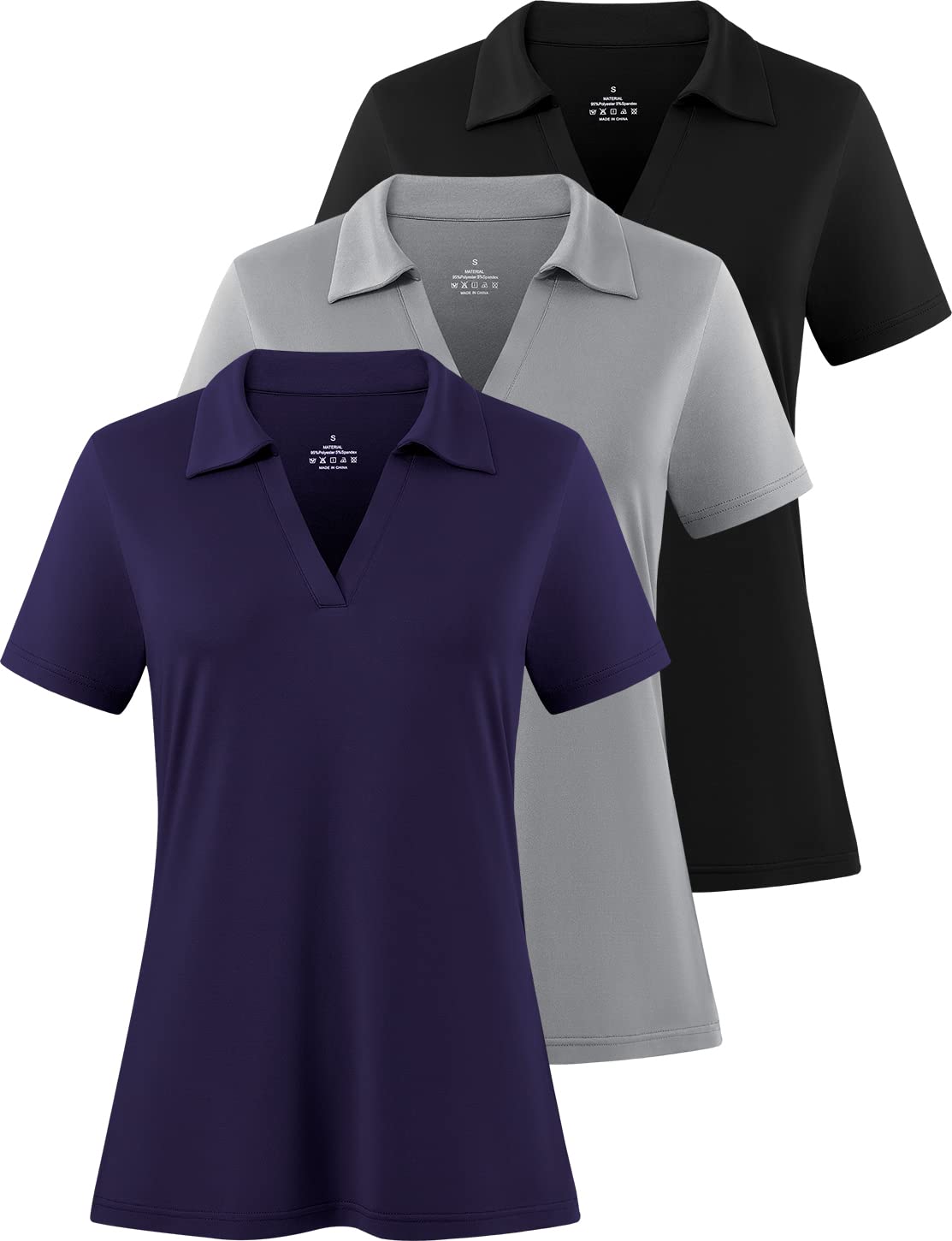 Femdouce Women's Polo Shirts V-Neck Short Sleeve Moisture Wicking Collared Shirts for Women Golf Polo Shirt for Work 1-3 Pack|Clothing