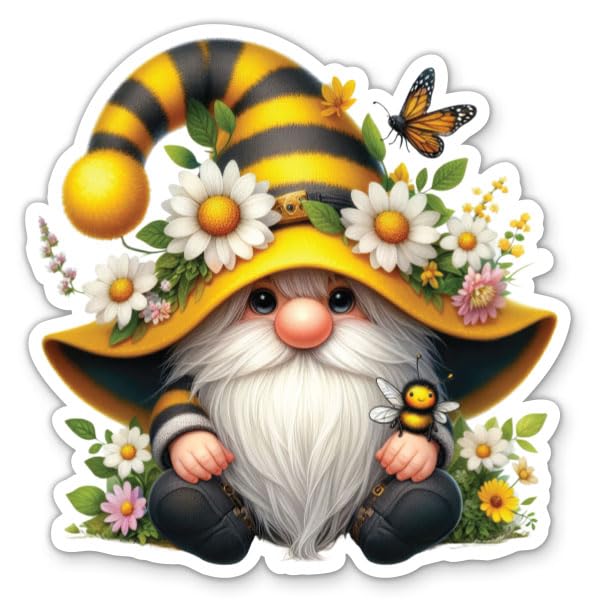 Honey Bee Gnome Sticker - 5" Laptop Sticker - Waterproof Vinyl for Car, Phone, Water Bottle - Cute Pretty Gnome Decal|Computers