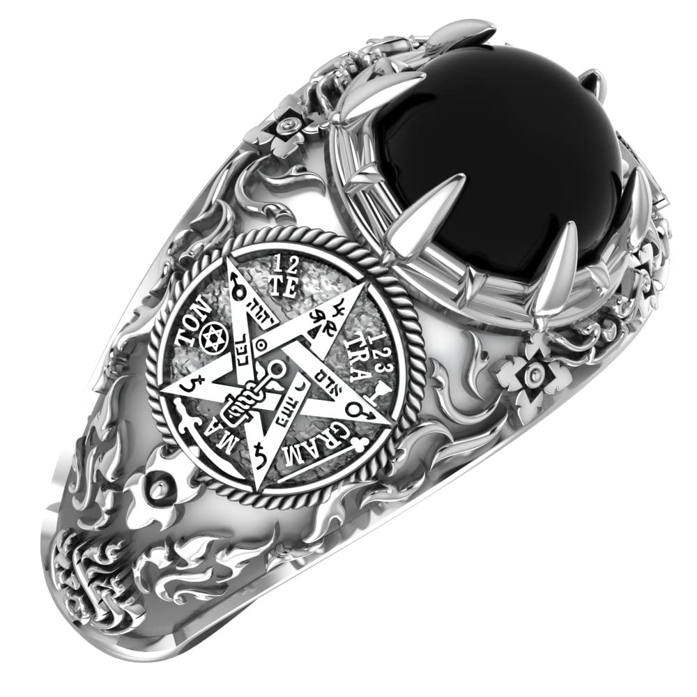 925 Sterling Silver Onyx Tetragrammaton Pentagram Star Ring Solomon Jewelry Size 6-15|others