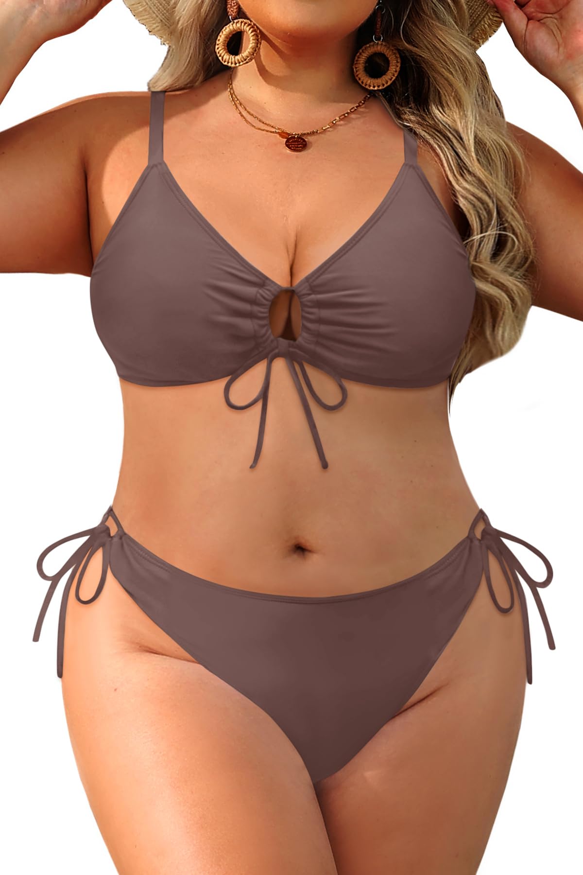 Daci Women's Plus Size Triangle Bikini Set, Sexy Tie Front Two-Piece Swimsuit|Clothing