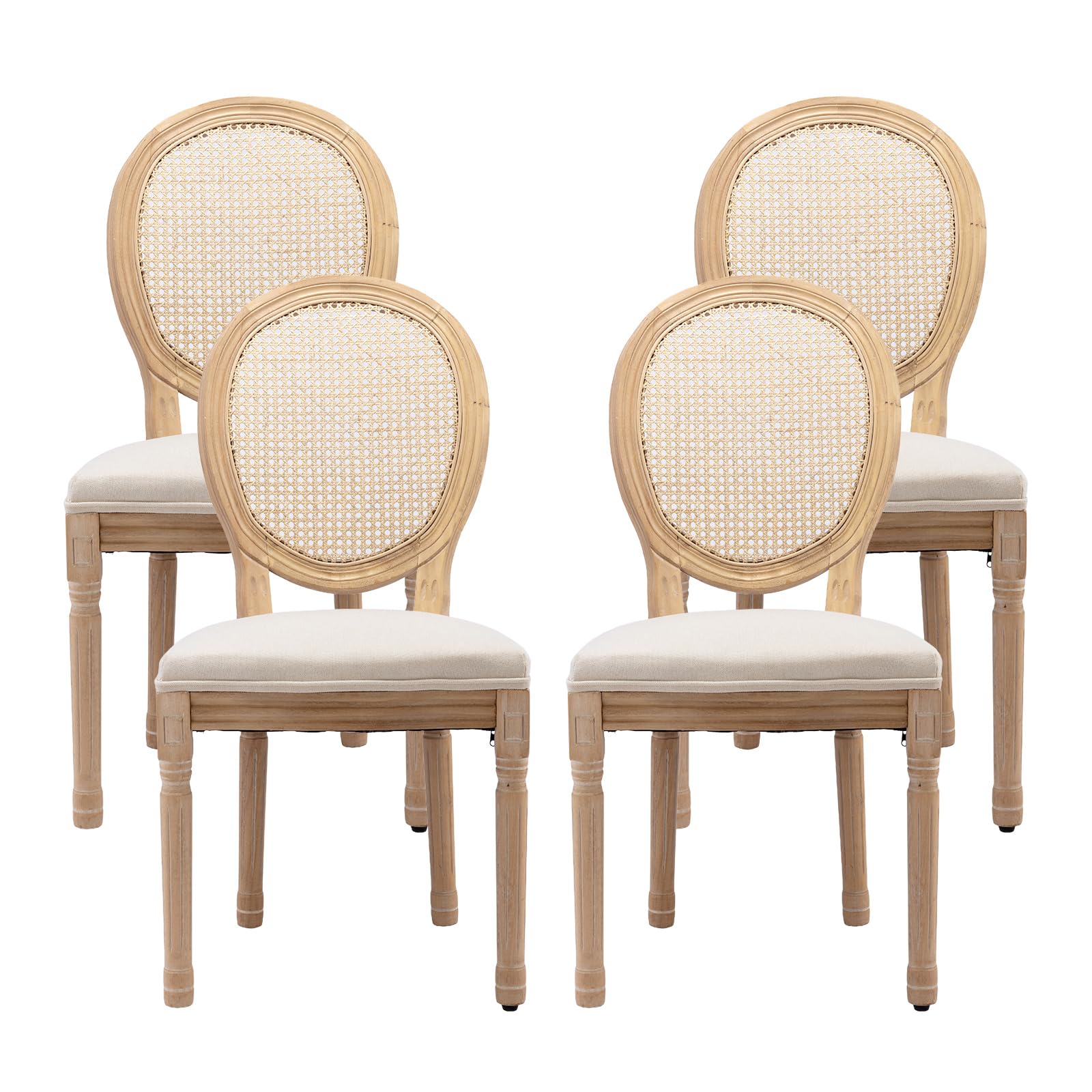 MZDOO French Country Dining Chairs Set of 4, Fabric Upholstered Farmhouse Chairs with Round Back and Solid Rubberwood Leg, Rattan Chairs for Dining,|Furniture