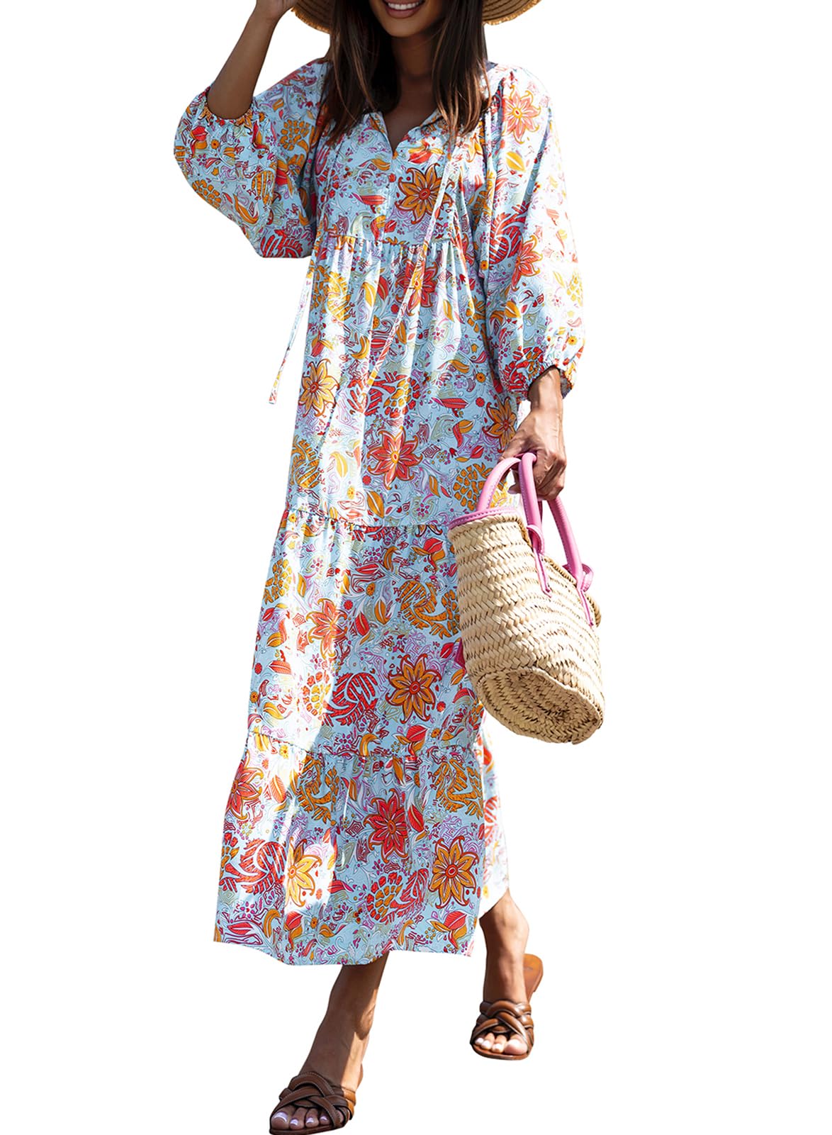 miduo Womens Loose Fit Casual Summer V Neck Half Sleeve Bohemian Geometric Pattern Maxi Long Dresses|Clothing