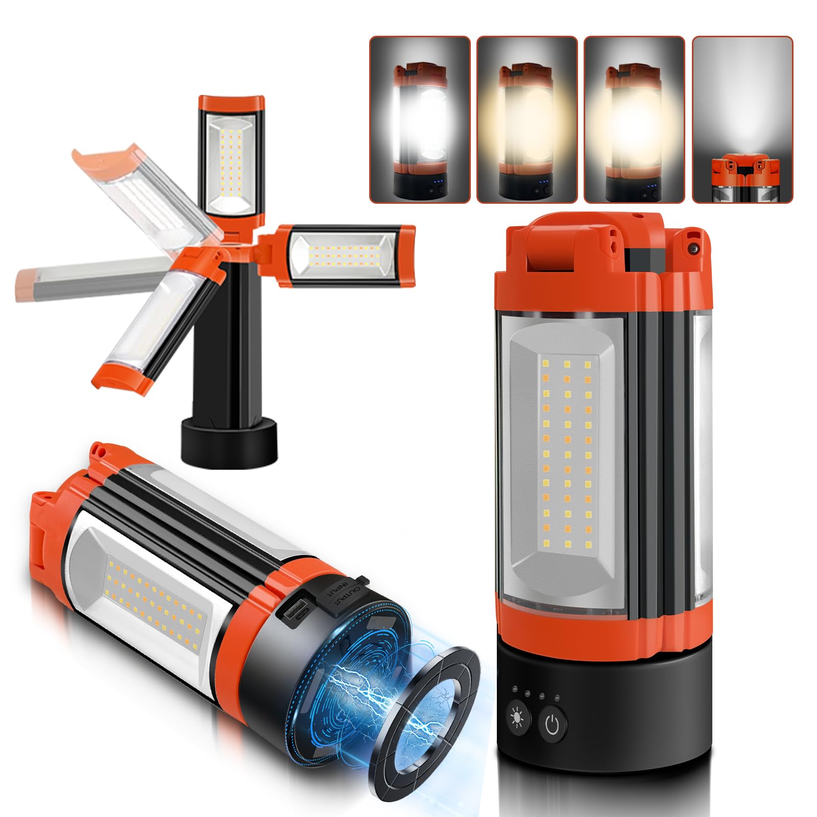 Rechargeable 10000mAh Camping Light, Cordless Work Light with 3 LED Lamp Heads, 2200 Lumens Dimmable Magnetic Emergency Flashlight, Orange|Tools